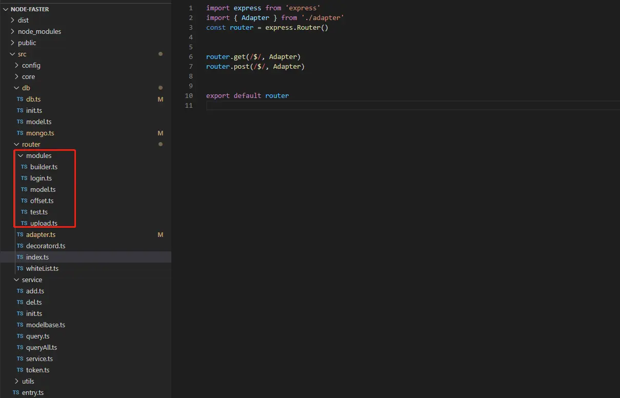 遍历module 文件夹,把自动生成的接口和自己写的接口 统一放在Adapter里。这样再也不用一个一个接口去定义了。