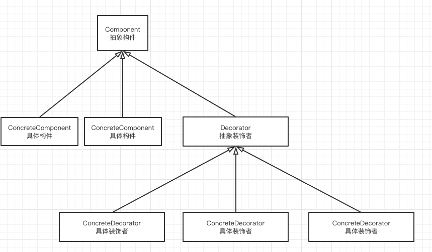 它是具体构件和抽象装饰类的共同父类,声明了在具体构件中实现的业务方法,它的引入可以使客户端以一致的方式处理没有被装饰的对象,以及装饰后的对象,可以做到对客户端透明。