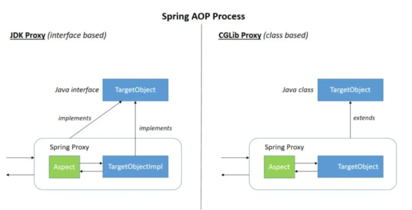 Spring AOP就是基于动态代理的,底层实现有俩种方式:一种是 JDK 动态代理(JDK Proxy),另一种是 CGLib(Code Generation Library(基于字节码操作)) 的方式。