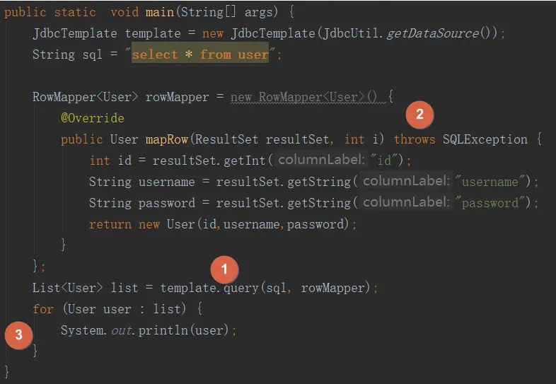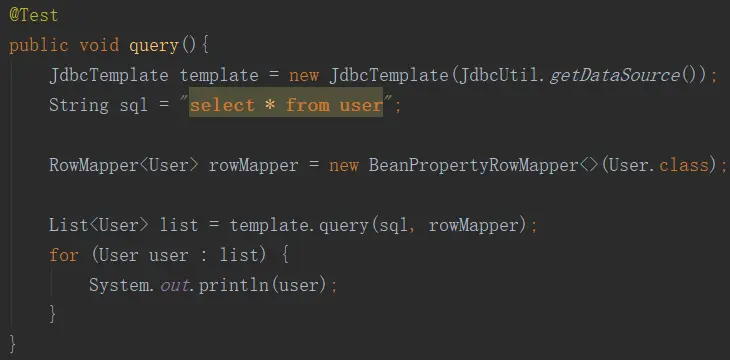 事实上在JavaTemplate中定义有一个实现类,可以使quary方法更加地简单。