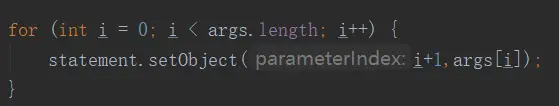 第2个参数是指“?”具体的值,是以args这个可变参数(也就是数组)来表示的,而数组的索引是以0开始的。