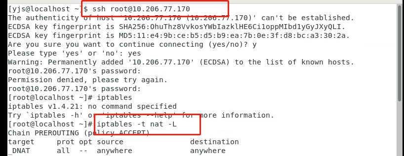 最后使用ssh远程连接ce上的CloudEdge,然后用iptables查看nat配置信息