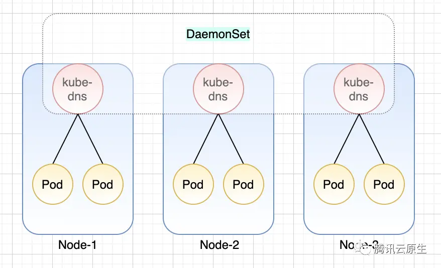如上图所示,在传统 kubernetes上,通过在集群中创建一个kube-dns Deployment 来解决域名问题。但是边缘计算集群,所有节点可能是不在一个局域网,很可能是跨可用区的,各节点对于 kube-dns 服务的访问无法保证成功,kube-dns 的 Deployment 部署方式不能满足边缘容器的需求。