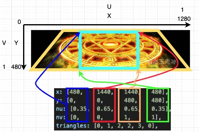 Sprite 组件的渲染模式 Mesh 的坐标轴是左上角,位置坐标 xy 范围是图片大小,纹理坐标 uv 范围是 0-1 。