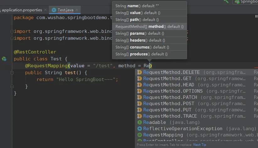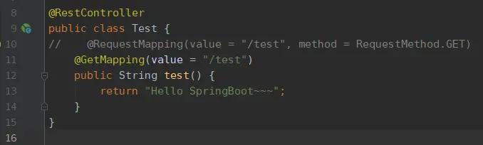 value代表请求的URLmethod代表请求的方法,具体内容详见上图的智能提示,如果不写的话,默认就是GETparams表示请求参数heads请求头的映射条件 以上注解可以@GetMapping替换 此时访问浏览器的接口,会看到响应内容: