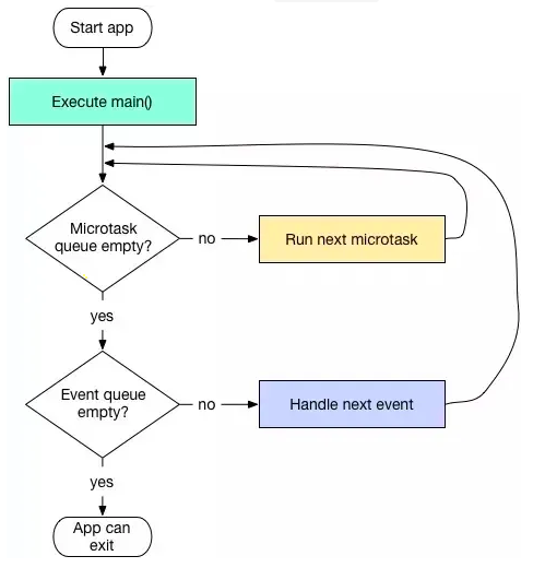 在每一次事件循环中,Dart总是先去第一个microtask queue中查询是否有可执行的任务,如果没有,才会处理后续的event queue的流程。