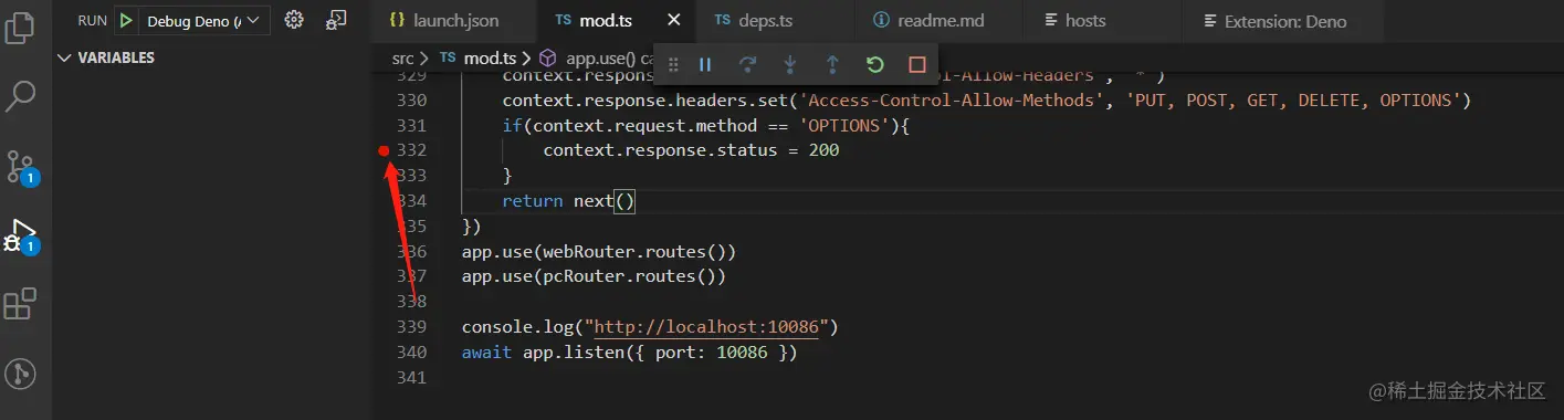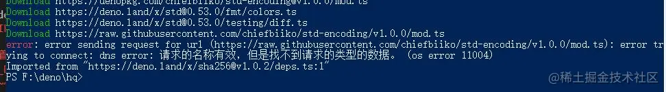 (这里又有一个问题,为啥要执行 --allow-net ,因为deno默认是安全的,所以需要允许网络之类的,不然文件,网络等操作无法被执行))