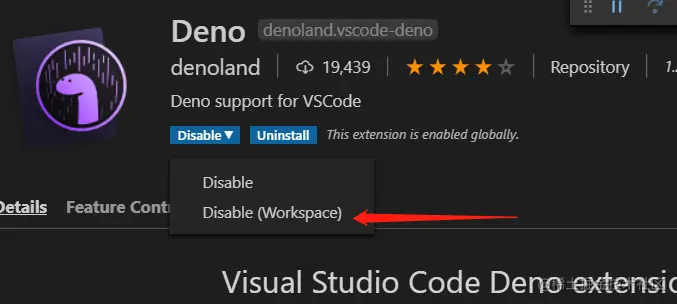 好了 ,一切很完美,但是这时候我们转回其他项目,会发现,到处都是红色的报错,因为ts、js等文件被deno插件给解析,我们需要只有在deno项目才启动它,于是可以在其他项目禁用deno。