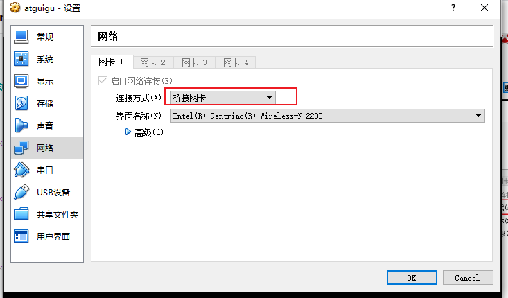 桥接网路-->选好网卡-->接入网线--->重启虚拟机service network restart