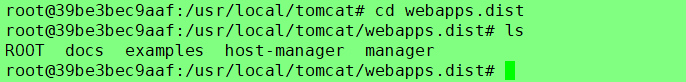 root@39be3bec9aaf:/usr/local/tomcat# cd webapps.dist