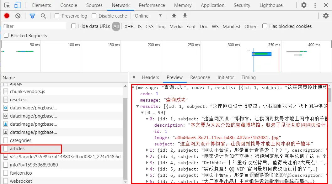 •在什么情况下要获取全部的文章列表? -- 涉及到Vue生命周期及钩子函数 所以现在仍然需要在Vue的mounted钩子函数中发送请求到WEB服务器,以获取全部文章列表,示例代码如下: