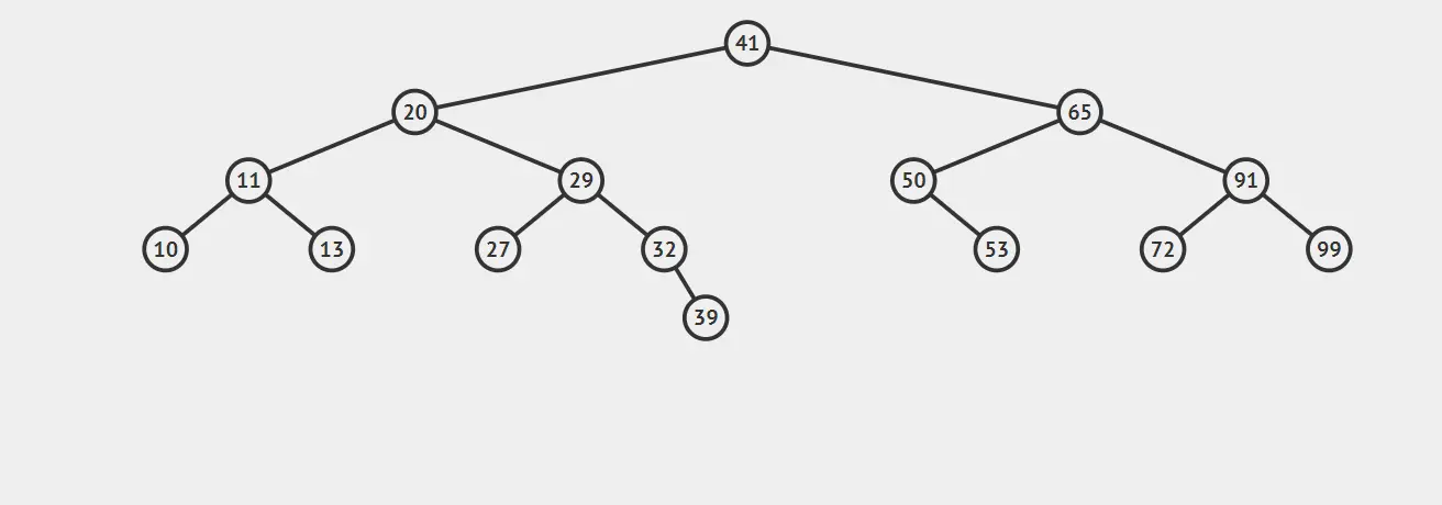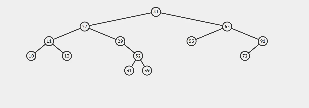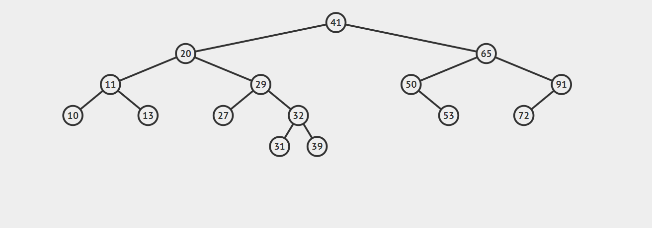 比如我们想查找32,首先,32小于41,所以对41的左子树进行查找,32大于20,再对20的右子树进行查找,紧接着对29的右子树查找,正好命中32,如果查找不到的话就返回null。