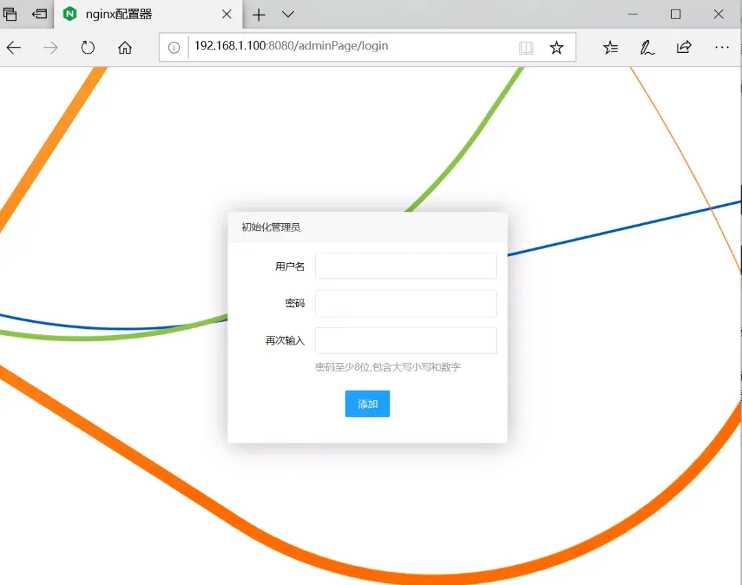 第一次登录,需要初始化用户,输入你的用户与密码,点击添加即可。