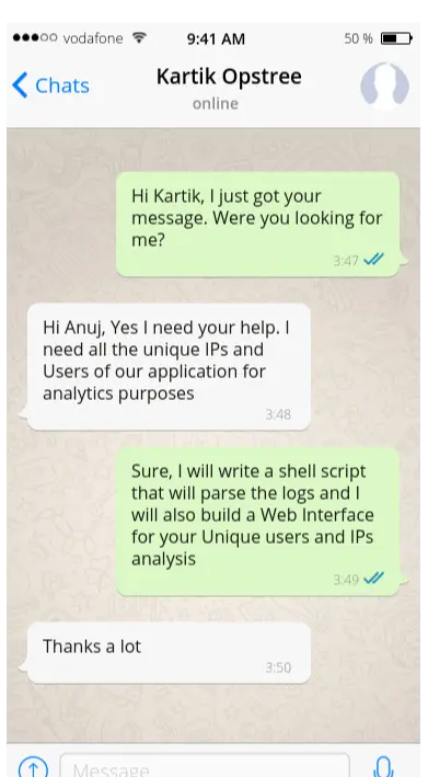 为了了解 JSON 日志记录的优越性,我们先来了解下 Anuj(系统工程师)和 Kartik(业务分析师)之间的一次对话。