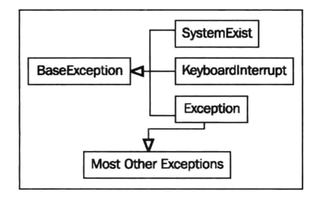 python中大部分的错误类都继承自 Exception(它又继承自 BaseException )