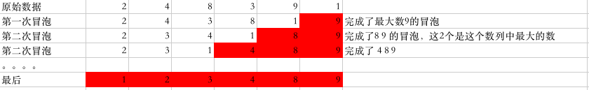 冒泡排序,顾名思义,按泡泡一样上浮起来。每一次比较2个相邻的数字,进行交换,交换到最后,便完全了一个数字的排序。进行N次比较,就完成了N个数字的排序。