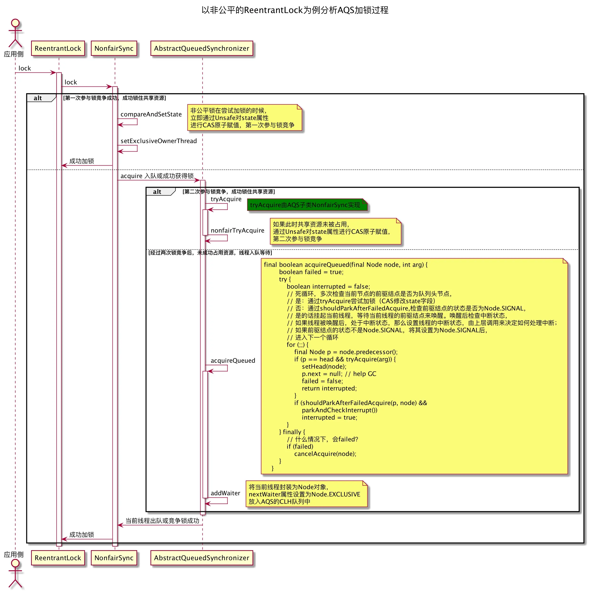 对于AQS中的acquire方法,实现了申请锁的过程。