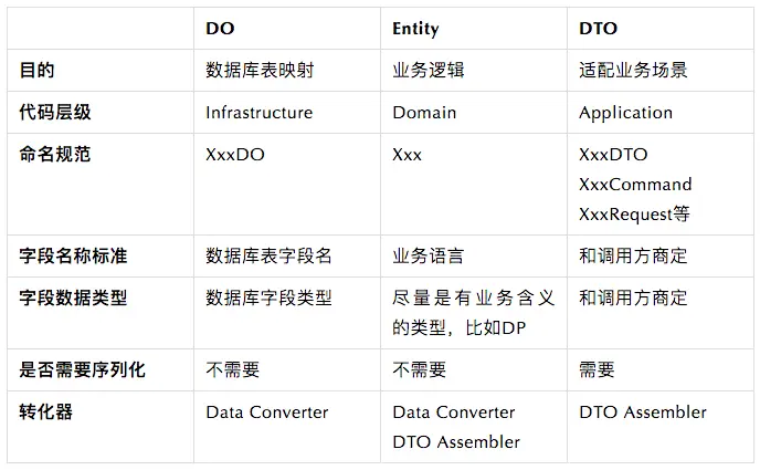 在讲Repository规范之前,我们需要先讲清楚3种模型的区别,Entity、Data Object (DO)和Data Transfer Object (DTO):