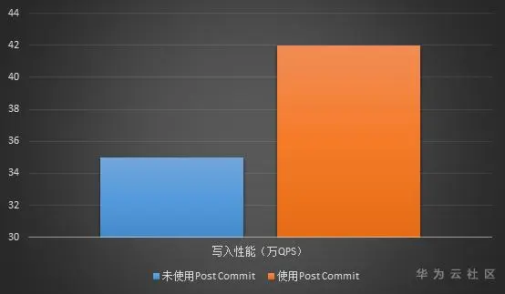 根据实际测试,在标准的sysbench写入模型下,没有使用Post Commit时,极限性能是35万QPS左右,而使用Post commit后,可以到大42万以上的QPS,提升了20%的写入性能。