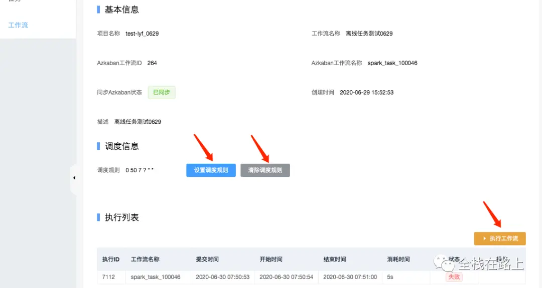 - 在详情页可以执行工作流,查看工作流执行记录、执行状态;