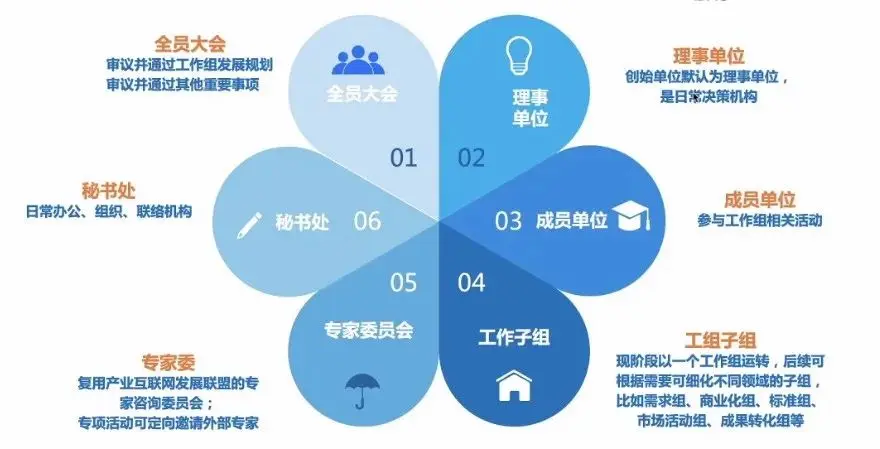 全员大会是工作组的最高领导机构,负责审议并通过工作组发展规划和其他重要事项。理事单位是日常的决策机构,16家创始单位默认为理事单位成员。工作组还设置了成员单位、工作子组、专家委和秘书处。