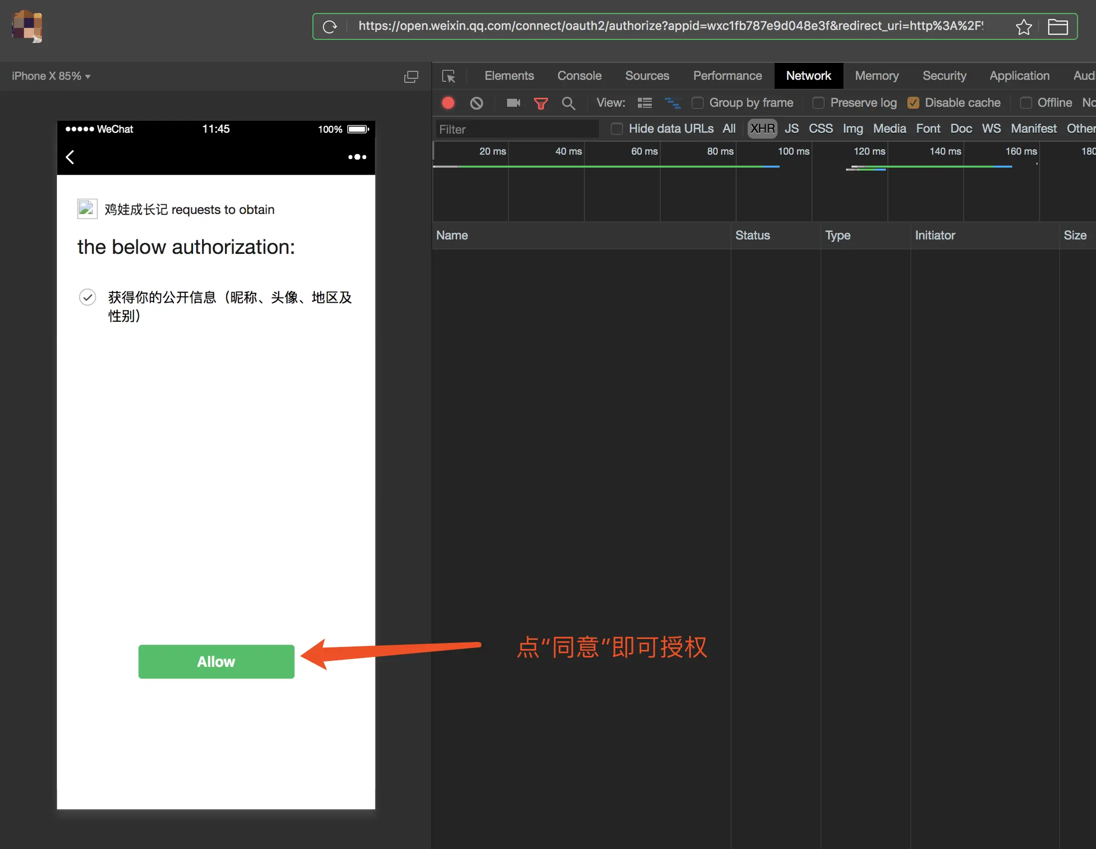 在地址栏中输入公众号配置的网页域名,然后回车,就会跳转授权页面。