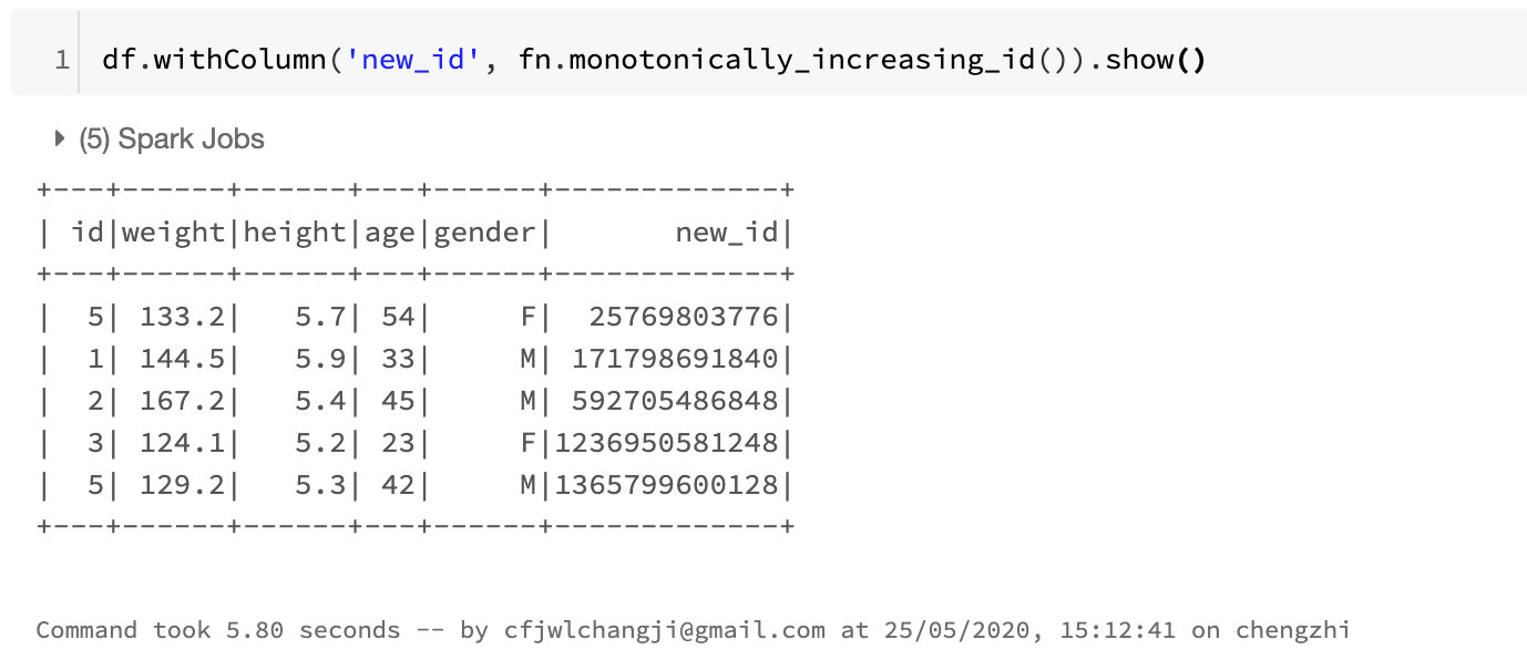 monotonically_increasing_id这个方法会生成一个唯一并且递增的id,这样我们就生成了新的id,完成了整个数据的去重过滤。