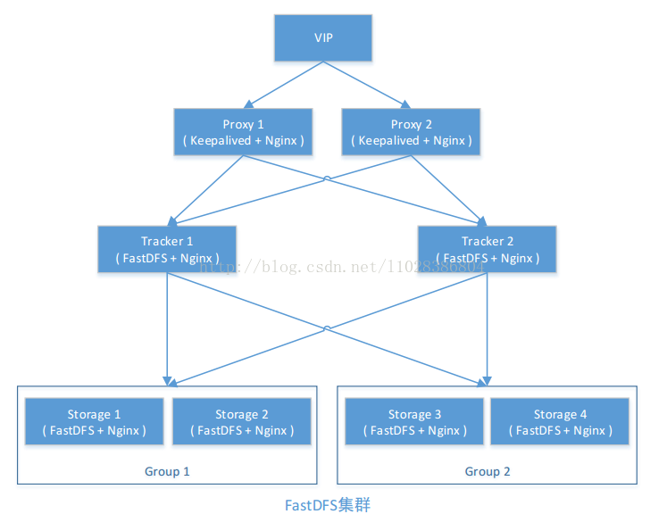 跟踪服务器 1: 192.168.50.135 liuyazhuang-tracker-1 跟踪服务器 2: 192.168.50.136 liuyazhuang-tracker-2 存储服务器 1: 192.168.50.137 liuyazhuang-storage-group1-1 存储服务器 2: 192.168.50.138 liuyazhuang-storage-group1-2 存储服务器 3: 192.168.50.139 liuyazhuang-storage-group2-1 存储服务器 4: 192.168.50.140 liuyazhuang-storage-group2-2 环境: CentOS 6.5 用户: root 数据目录: /fastdfs (注: 数据目录按你的数据盘挂载路径而定) 安装包:到链接download.csdn.net/detail/l102…下载 FastDFS v5.05 libfastcommon-master.zip(是从 FastDFS 和 FastDHT 中提取出来的公共 C 函数库) fastdfs-nginx-module_v1.16.tar.gz nginx-1.6.2.tar.gz fastdfs_client_java._v1.25.tar.gz