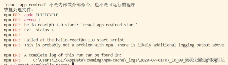 react-app-rewired 不是内部或外部命令,也不是可运行程序 sizuka 2020-07-02 2,616 阅读1分钟 react运行cnpm run start报下面的错 删除 node_modules 文件夹, npm install 重新下载,之后再执行