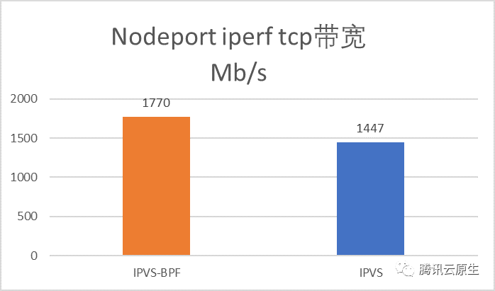 如上图所示,iperf带宽测试中IPVS-BPF模式相对IPVS mode性能提升了22%。