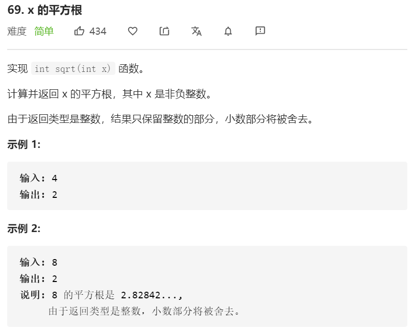这题是要用二分寻找一个数的平方根的整数部分。