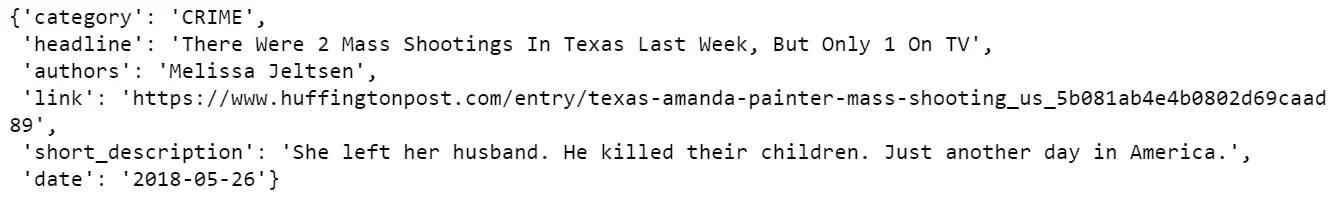 数据集包含在一个json文件中,因此我将首先使用json包将其读入字典列表,然后将其转换为pandas数据帧。
