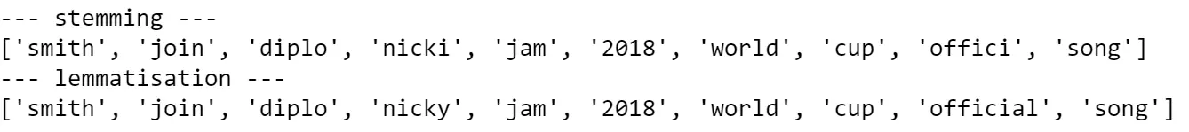 我们需要非常小心的停用词,因为如果你删除了错误的标识,你可能会失去重要的信息。例如,删除了“Will”一词,我们丢失了此人是Will Smith的信息。