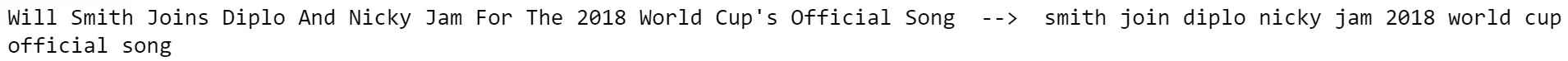 让我们从第一个新闻标题中删除这些停用词: