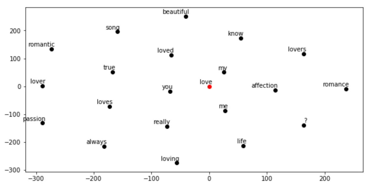 词嵌入模型通过构建所选单词前后出现的标识的概率分布,将特定单词映射到向量。这些模型很快变得流行,因为一旦你有了实数而不是字符串,你就可以执行计算了。例如,要查找相同上下文的单词,可以简单地计算向量距离。