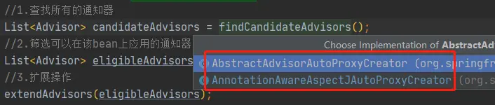 org.springframework.aop.framework.autoproxy.AbstractAdvisorAutoProxyCreator#findCandidateAdvisors: