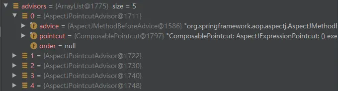 //5.从容器中获取Advisor,并添加到advisors中,在这个时候Advisor就被实例化了