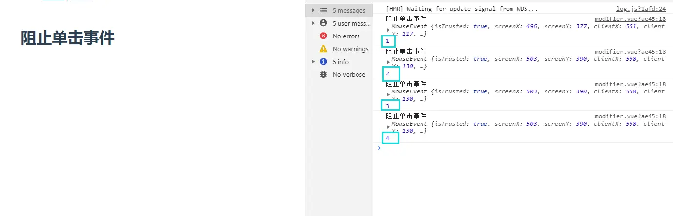 console.log("阻止单击事件",e,this.count)