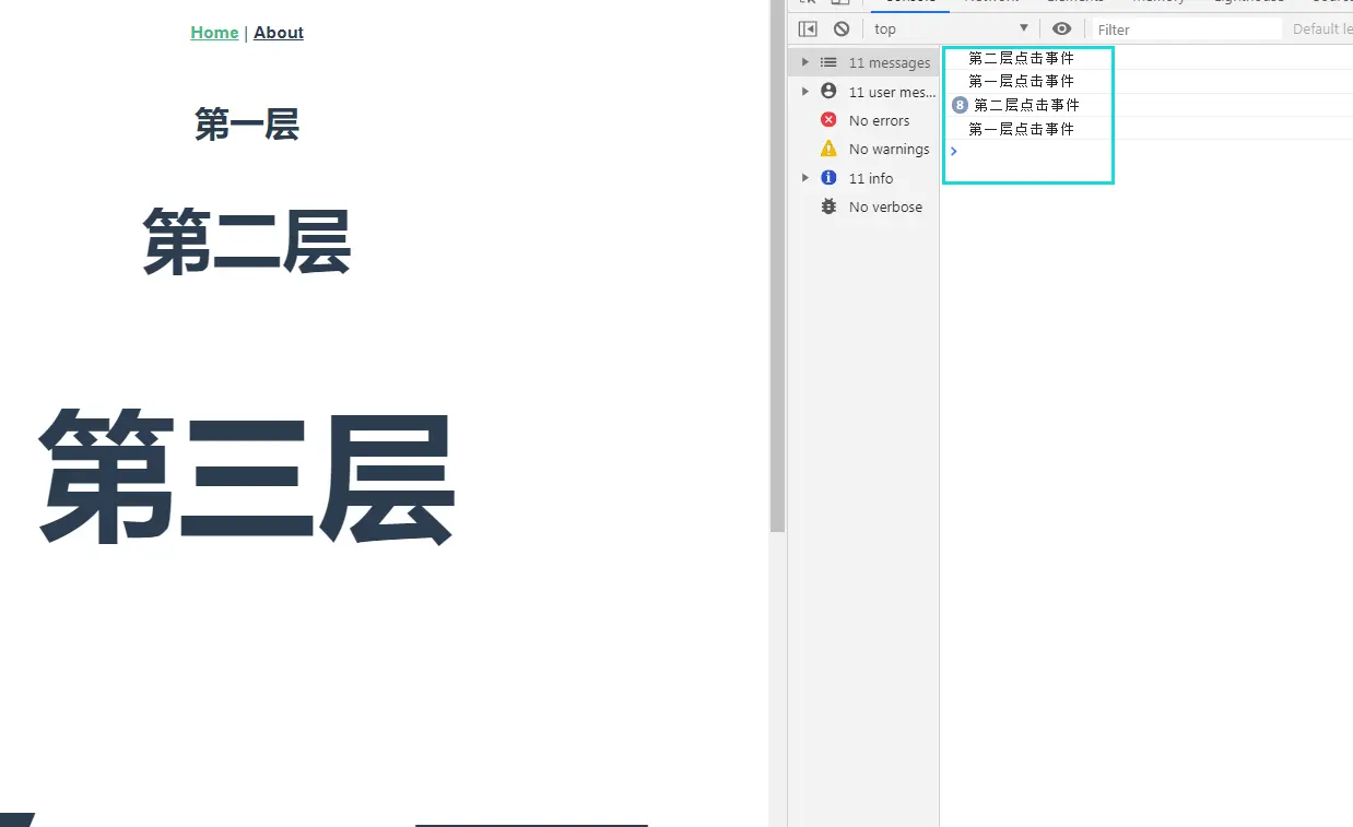 console.log("第一层点击事件")