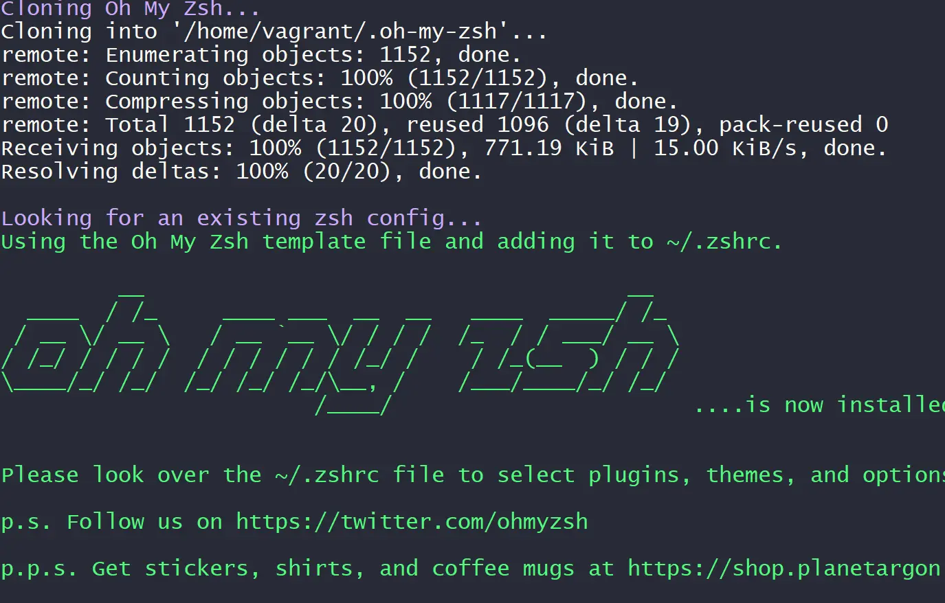 sh -c "$(curl -fsSL https://raw.githubusercontent.com/ohmyzsh/ohmyzsh/master/tools/install.sh)"