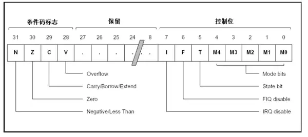 - 程序状态寄存器的每一位都有特定的用途,此处只介绍几种常用的标志位