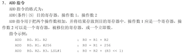 add指令是将两个操作数相加,并将结果存放到目标寄存器中。具体说明如下