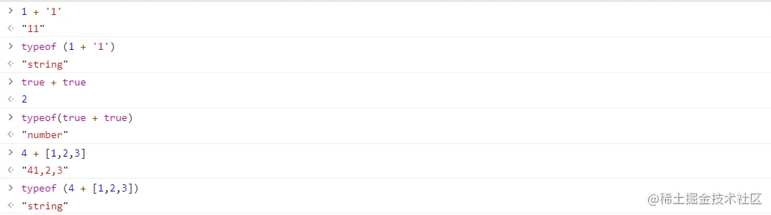 需要注意一点:'a' + + 'b'会返回aNaN,因为第一个加号会将之后的部分隐式转换为number,即NaN,