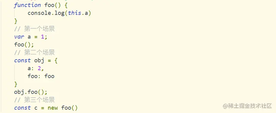 - 对于obj.foo()来说,只需要记住,谁调用了函数,谁就是this,所以这个场景下,foo函数中的this就是obj对象