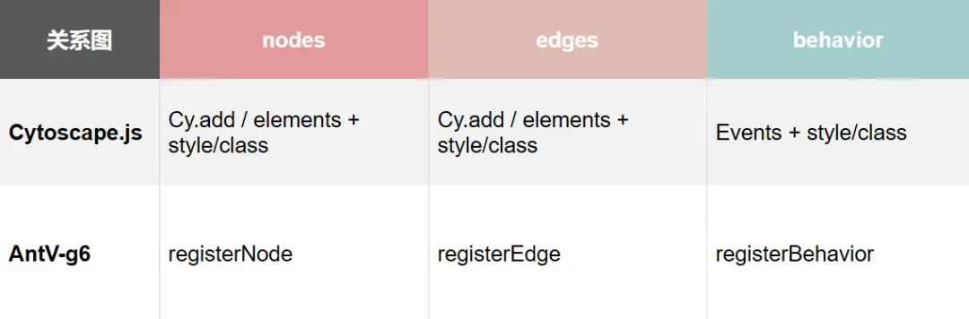 此项为Cytoscape.js的短板。其label是以style的形式渲染,所以在其使用过程中并不能多个label并存,需要通过插件去渲染canvas。在g6中,用户可以在registerNode上自行定义每一个点、线的展现形式,从而有效规避该问题。