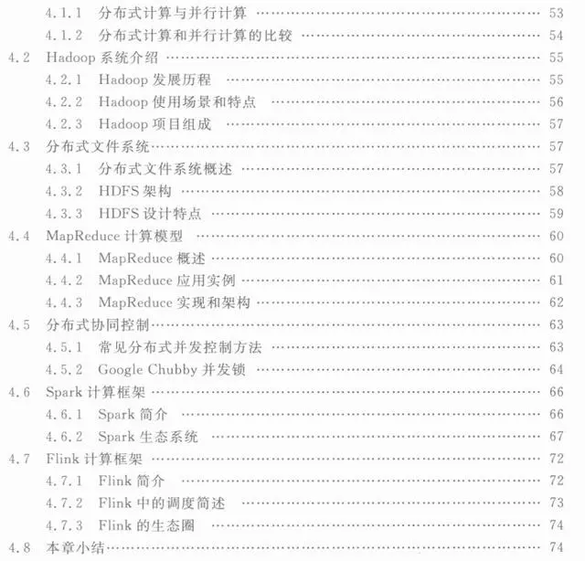 第4章分布式计算框架,介绍构成大数据云计算的主要关键技术-分 布式计算技术,以及Hadoop、Spark.Flink等分布式大数据计算框架。