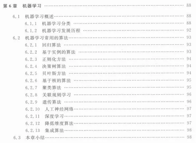 第6章机器学习,介绍机器学习的概念、分类和发展历程,简要介绍多种机器学习算法。