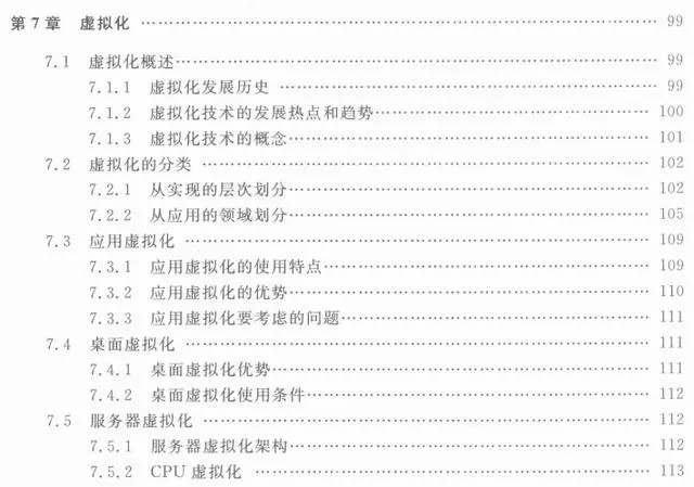 第7章虚拟化,介绍构成云计算的主要关键技术虚 拟技术,它整合多种计算资源,实现架构动态化,并达到集中管理和动态使用物理资源及虚拟资源,以提高系统结构的弹性和灵活性,降低成本、改进服务、减少管理风险等目标。