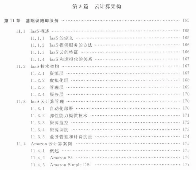 第11章基础设施即服务,介绍云计算环境中的laaS(InfrastructureasaService),分析Amazon公司的laaS案例。