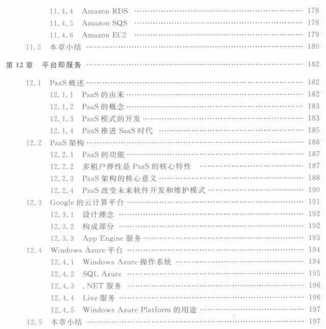 第12章平台即服务,介绍云计算环境中的PaaS(Platform as a Service), 分析GoogleApp Engine和Windows Azure Platform的PaaS案例。